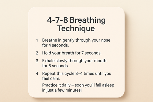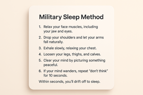 With consistent practice, this technique trains your body to fall asleep quickly, even in noisy or stressful environments.